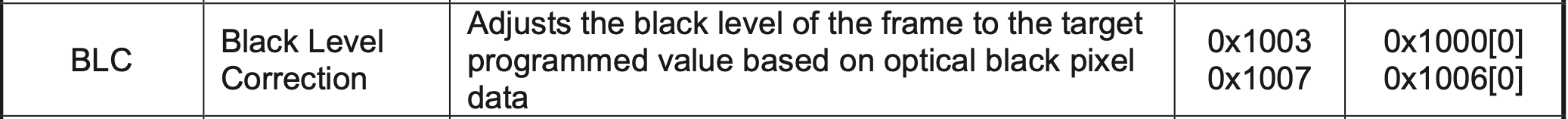 However, I still want to focus on changing the camera parameters, after reading the datasheet of HM01b0, I find something maybe helpful – Black Level Corresction!